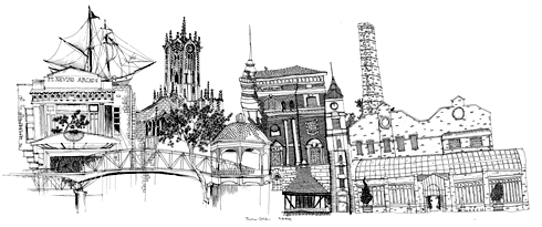 illustrations depiciting some of the favourite spots of actor
