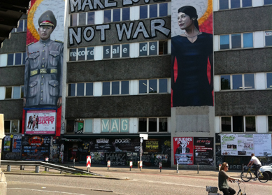 the large peace mural at Bendastraße, Hertabrücke