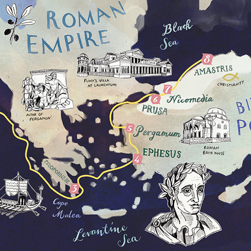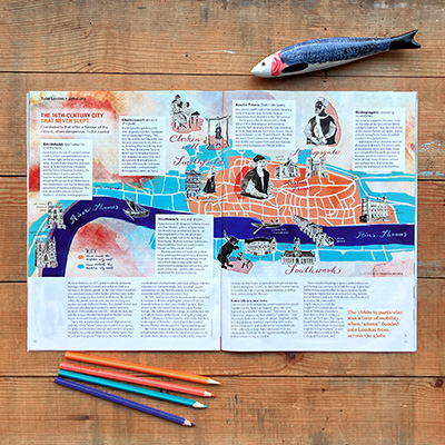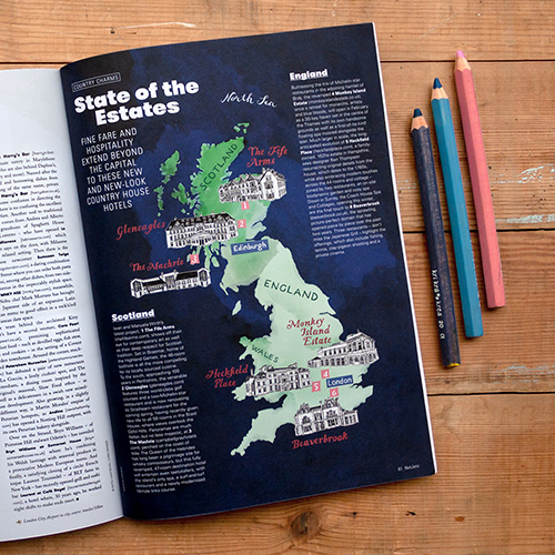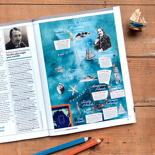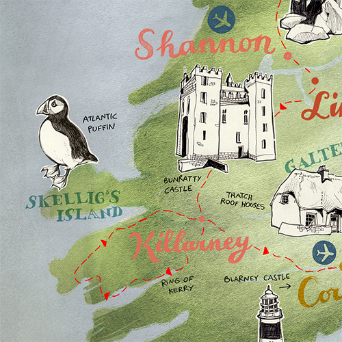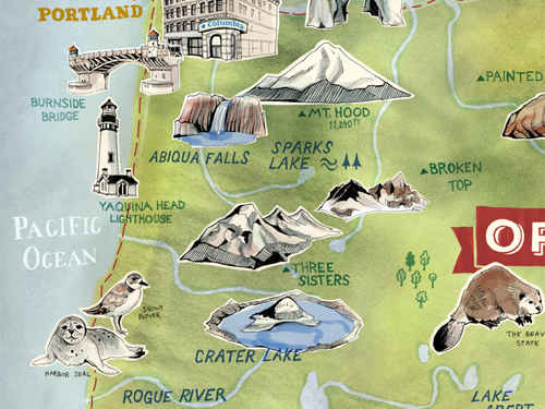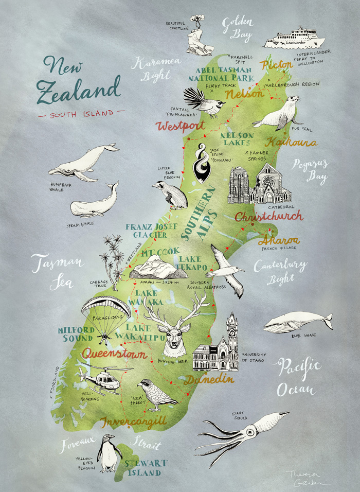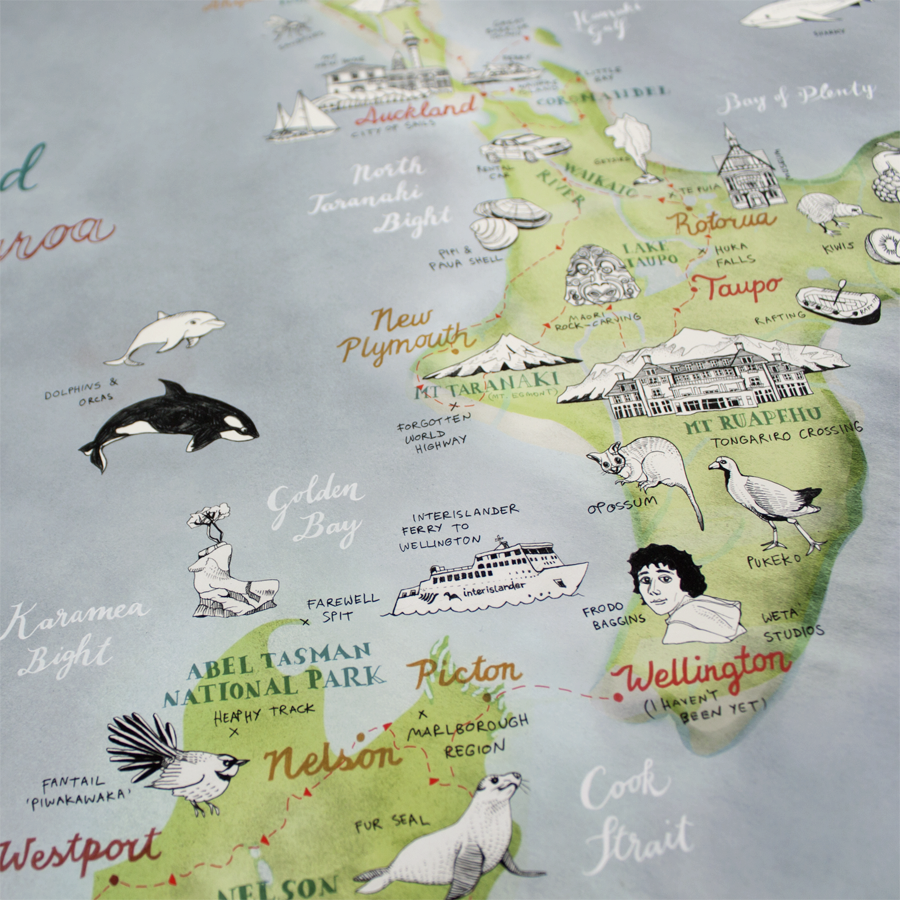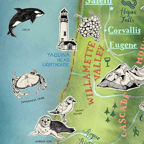 created 17 individual illustrations showing the favorite spots