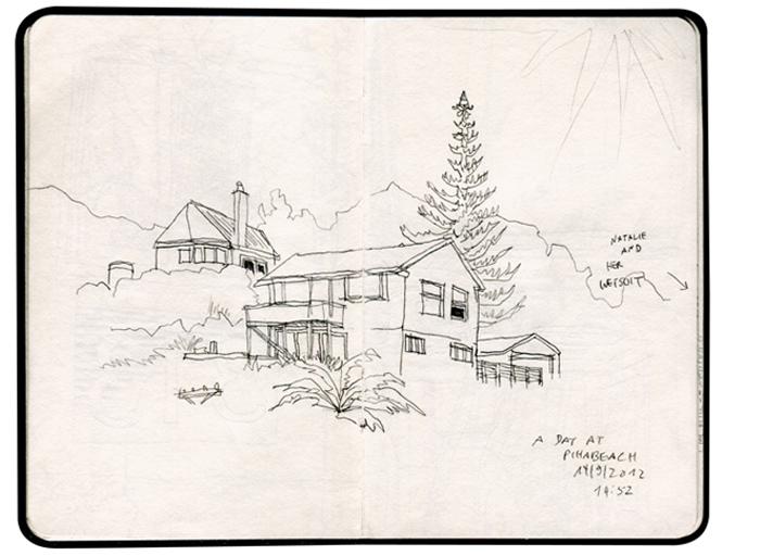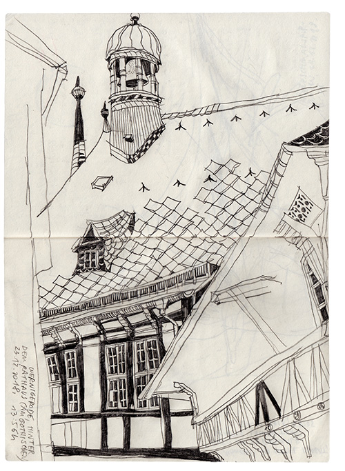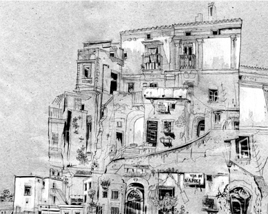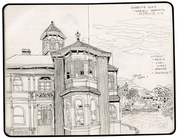 added watercolors later. The neighborhood scenery