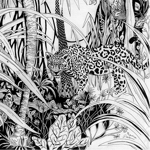 of wild animals, plants and people heading towards a bright future.