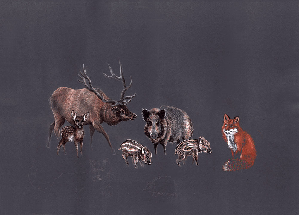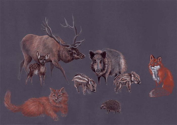 wild creatures/children in forests or wilderness.